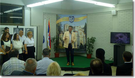 – Мирослав Алексић, поздрав гостима, свечано отвара 27. Јефимијине дане и уручује минијатуру манастирске камене розете Историјском музеју Србије...