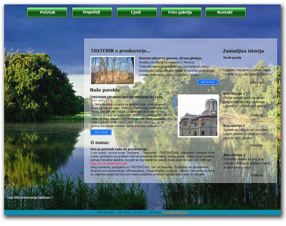 Ево малог времеплова од пре 10 година, шта је камера забележила у граду, на обалама реке, на спортским теренима, на културним манифестацијама и дружењима. Уз добру мелодију покретним сликама подсећамо на радове и онављање инфраструктуре, поготову после великих поплава из маја те године. Ово може послужити и многим путницима који намеравају да прођу овим крајем, као путоказ шта све могу видети и посетити у „малој чаршији“ на десној обали Западне Мораве. Много тога има новог данас, али и многи житељи су нас напустили у току тих 10 година. Уједно, доста младих ће видети како је Трстеник изгледао у неким својим деловима, пре 10 година. Погледајте и Ви...