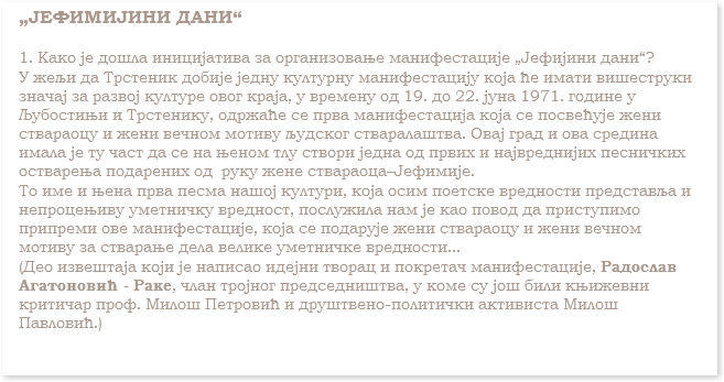 „ЈЕФИМИЈИНИ ДАНИ“ 1. Како је дошла иницијатива за организовање манифестације „Јефијини дани“?