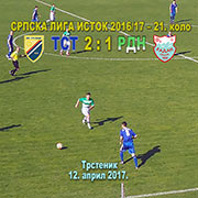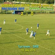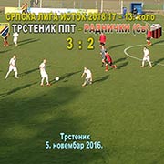 Srpska liga–ISTOK, 2016/17. KOLO 29. FK Trstenik PPT-FK Tabane 1970 (Jagodina) 5:2 (4:0); i pored ogromnih problema u klubu, zaigrali srcem za svoju publiku i deklasirali goste; Trstenik, 28. maj 2017. Srpska liga–ISTOK, 2016/17. KOLO 27. FK Trstenik PPT-FK Jedinstvo (Paraćin) 2:3 (1:2); još jedan zasluženi poraz na domaćem terenu; Trstenik, 17. maj 2017. Srpska liga–ISTOK, 2016/17. KOLO 25. FK Trstenik PPT-FK Dunav (Prahovo) 1:1 (0:0); još jedna slaba igra domaćih fudbalera i zaslužen bod za goste; Trstenik, 6. maj 2017. OFS Trstenik-KUP finale:  FK Trstenik PPT-FK Poljoprivrednik (Počekovina) 8:7 (3:3, 2:0); jedanaesterci odlučili pobednika, golman domaćih odbranio dva; Trstenik, 26. april 2017. Srpska liga–ISTOK, 2016/17. KOLO 23. FK Trstenik PPT-FK Ozren (Sokobanja) 1:2 (0:1); katastrofalne greške odbrane domaćih, brze kontre gostiju; Trstenik, 22. april 2017. Srpska liga–ISTOK, 2016/17.  prolećni deo. KOLO 21. FK Trstenik PPT-FK Radan (Lebane) 2:1 (1:1); desetkovani, ali pobedili zasluženo; Trstenik, 12. april 2017. Srpska liga–ISTOK, 2016/17.  prolećni deo. KOLO 19. FK Trstenik PPT-FK Moravac ORION 2:4 (2:1); promašene šanse domaćina, gosti kaznili; Trstenik, 1. april 2017. Srpska liga–ISTOK, sezona 2016/17 prolećni deo. KOLO 18. FK Trstenik PPT-FK Timok 0:0. Golman gostiju odbranio penal i zadivio Trsteničane; Trstenik, 25. mart 2017. god. Srpska liga–ISTOK, sezona 2016/17 prolećni deo. KOLO 16. FK Trstenik PPT-FK Vlasina 3:0 (1:0); Trstenik, 11. mart 2017. god. Srpska liga–ISTOK, sezona 2016/17 prolećni deo, prijateljska utakmica: FK Trstenik PPT-FK Tabane 1970 2:1 (1:0); Trstenik, 4. mart 2017. god. Srpska liga–ISTOK, sezona 2016/17, KOLO 15: FK Trstenik PPT-FK Pukovac 4:2 (3:1); Trstenik, 19. novembar 2016. god. Srpska liga–ISTOK, sezona 2016/17, KOLO 13: FK Trstenik PPT-FK Radnički (Sv) 3:2 (2:1); Trstenik, 5. novembar 2016. god. Srpska liga–ISTOK, sezona 2016/17, KOLO 11: FK Trstenik-FK Temnić 1924 2:3 (2:3); Trstenik, 22. oktobar 2016. god. Srpska liga–ISTOK, sezona 2016/17, KOLO 9: FK Trstenik-FK Jedinstvo (B) 1:1 (1:0); Trstenik, 8. oktobar 2016. god. Srpska liga–ISTOK, sezona 2016/17, KOLO 7: FK Trstenik-OFK Sinđelić 2:1 (1:0); Trstenik, 24. septembar 2016. god. Srpska liga–ISTOK, sezona 2016/17, KOLO 5: FK Trstenik-FK Car Konstantin 1:3 (0:1); Trstenik, 10. septembar 2016. god. Srpska liga–ISTOK, sezona 2016/17, KOLO 2: FK Trstenik-FK Sloga (Desp) 2:0 (1:0); Trstenik, 20. avgust 2016. god. Srpska liga–Istok: SA TRSTENIČKOG IGRALIŠTA, TOP-10 golova-proleće 2016. Trstenik, mart/jun 2016. god. Srpska liga–ISTOK, kolo 27. Trstenik PPT–Radan (Lebane) 2:0 (0:0). Prolećni deo prvenstva 2015/16; Trstenik 18. maj 2016. god.