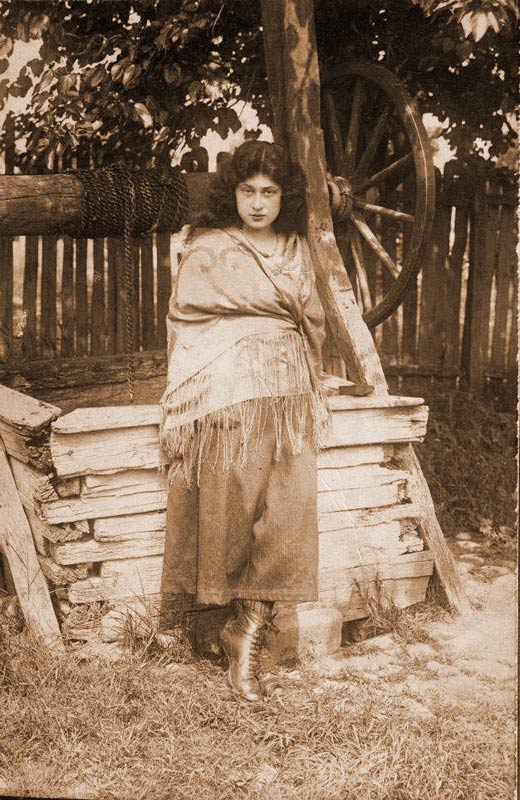 Испод черге, дубље унутра, спавала је једна стара циганка, а при самоме уласку седела је друга, млада око двајестину година и дојила дете. Чим је угледала нас, одмах нас понуди да нам баца карте.