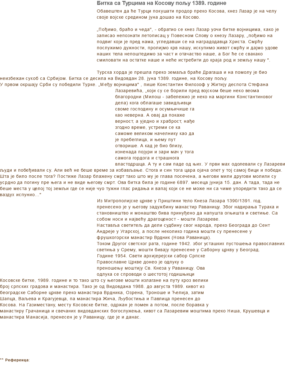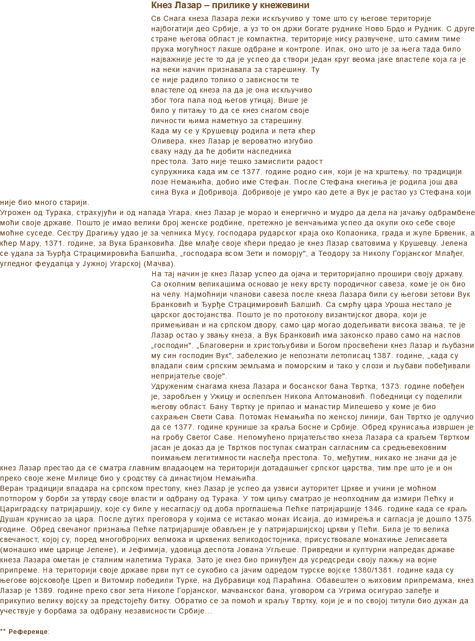 Житије кнеза Лазара (Српска православна црква) – кликни за комплетан текст.