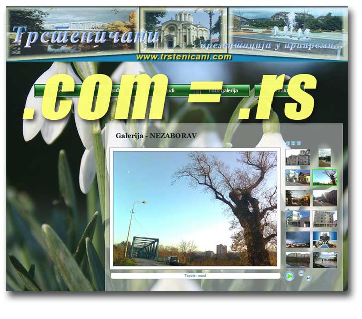 – Što se tiče fotografija, logotipova, banera, ikona i simbola na sajtu je prikazano u raznim, veličinama i formatima (.jpg, .bmp, .png, .gif i .cdr) 20.858! slika i sličica. Ovde moramo istaći i veliku pomoć mnogih posetilaca i saradnika sajta, a posebno naših starih Trsteničana, koji su nam nesebično dali da skeniramo brojne fotografije iz prošlog i XIX veka, a bile su od izuzetnog značaja za rasvetljavanje bogate istorijske prošlosti našeg grada. Tako smo izvukli iz prašine i prikazali fotografijama, stradanja Starog gvozdenog mosta, objasnili istoriju sata na zvonari crkve Svete Trojice, aktivirali prekinutu istoriju plivanja za Bogojavljenje, pokazali šta piše na zvonima crkve iz 1924. godine, oživeli uspomene na zaboravljenu legendu srpskog novinarstva Ljubišu Vukadinovića, predstavili jednu od Partizanovih fudbalskih legendi „njegovu crno-belu bebu“ Aleksandra Jončića i mnogo toga još.