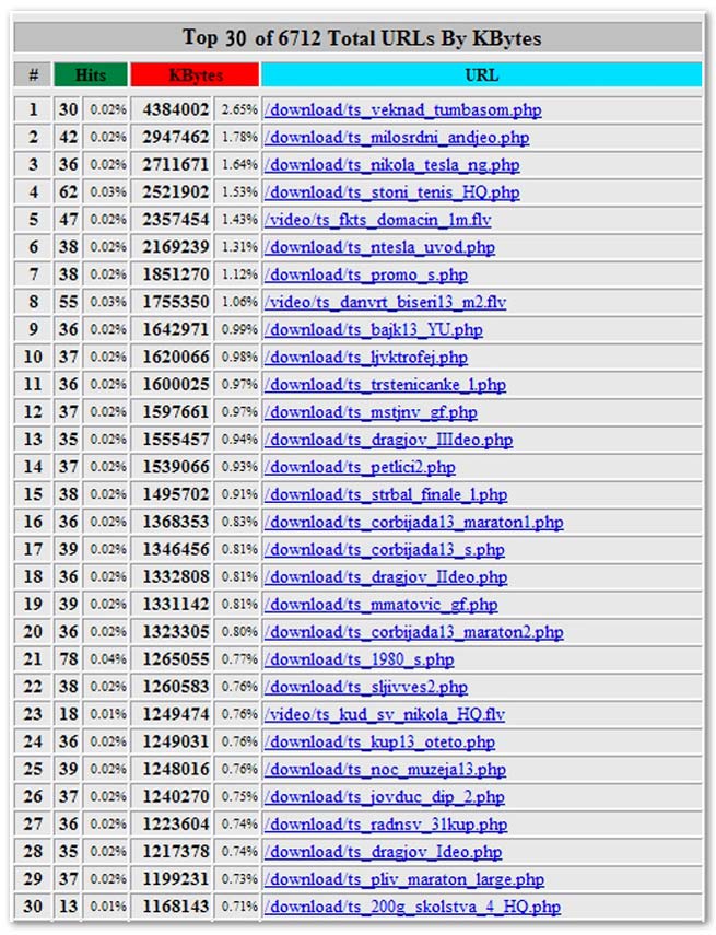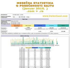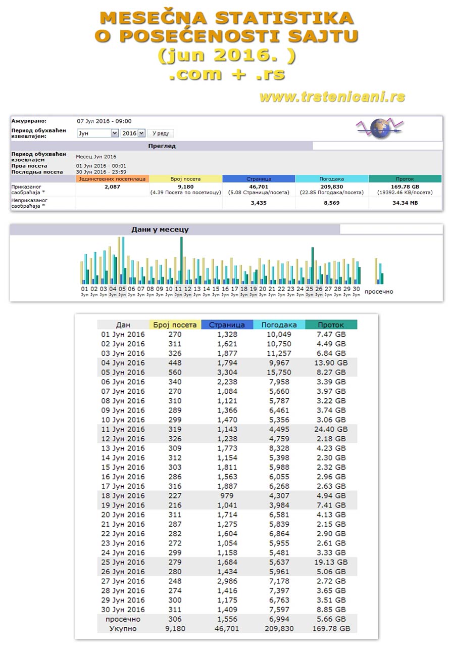 – Ranije, JUL 2015. rekorder 9284 različitih URL adresa u mesecu. Da napomenemo da je do sada ukupno preuzeto (download) sa našeg sajta (podaci zaključno sa januarom 2016.) 7395 GB – 7,2 TB materijala. Hvala što nas pratite i verujete nam.